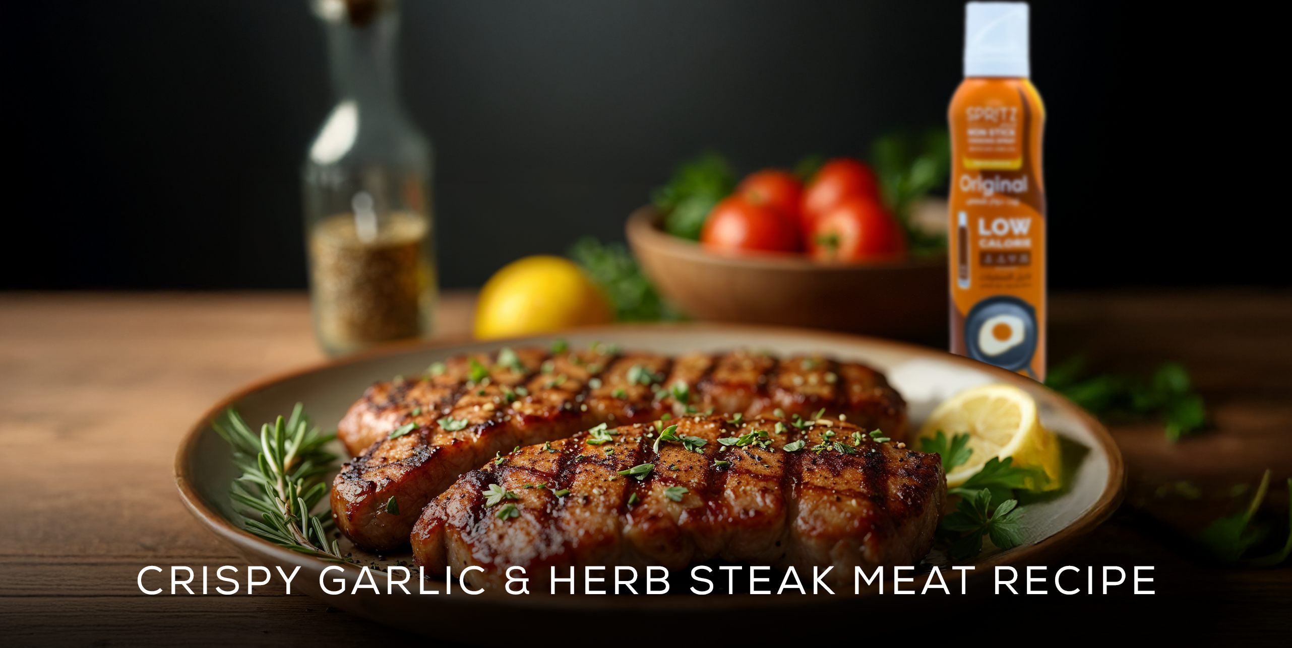 Elevate your culinary skills with this mouthwatering Crispy Garlic & Herb steak Meat recipe, featuring Spritz, the premium non-stick cooking spray. This easy-to-follow recipe guarantees a flavorful, low-calorie meal that will leave your taste buds dancing.